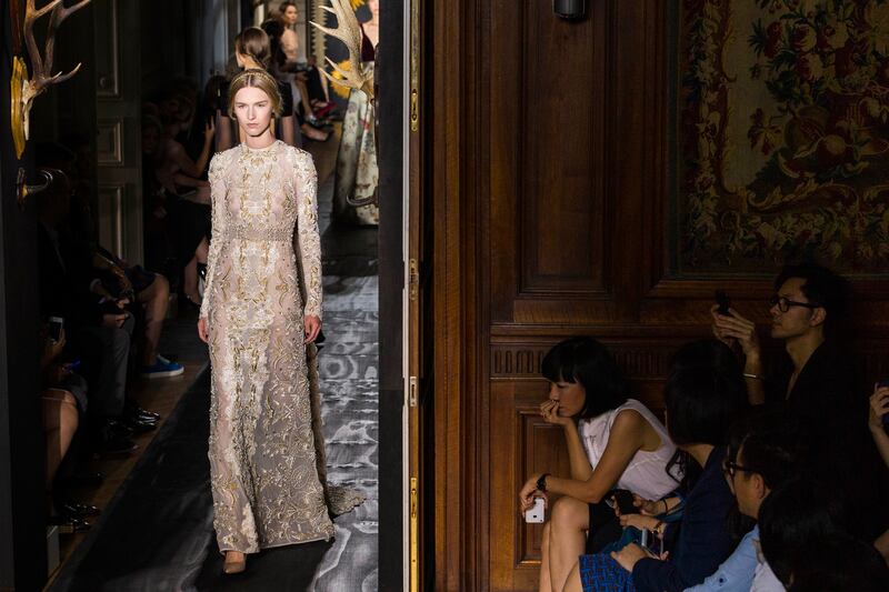 Some of the room's ornate style seemed to have been translated into Valentino's 2013 Fall Couture collection from designers Maria Grazia Chiuri and Pierpaolo Piccioli, which debuted there on Wednesday night.