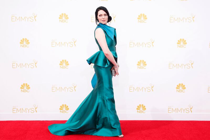 The dress that ate the actress. Laura Prepon at the Emmys, in some kind of sartorial Little Shop of Horrors “Feed Me” situation with her own frock. Can anyone save her? Seymour?