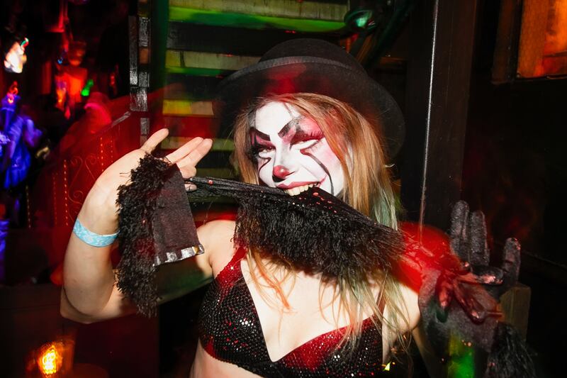 Covered in clown makeup and flamboyantly dressed, they’re burlesque dancers with a twist: a surprising ability to be hot while performing terrifying, titillating, and often extremely painful tricks. And the end result tends to be packed pop-up nights that draw out the novelty-seekers and fetishists alike, intrigued by the crazy promise of a sexy clown deep-throating a 4-foot balloon.