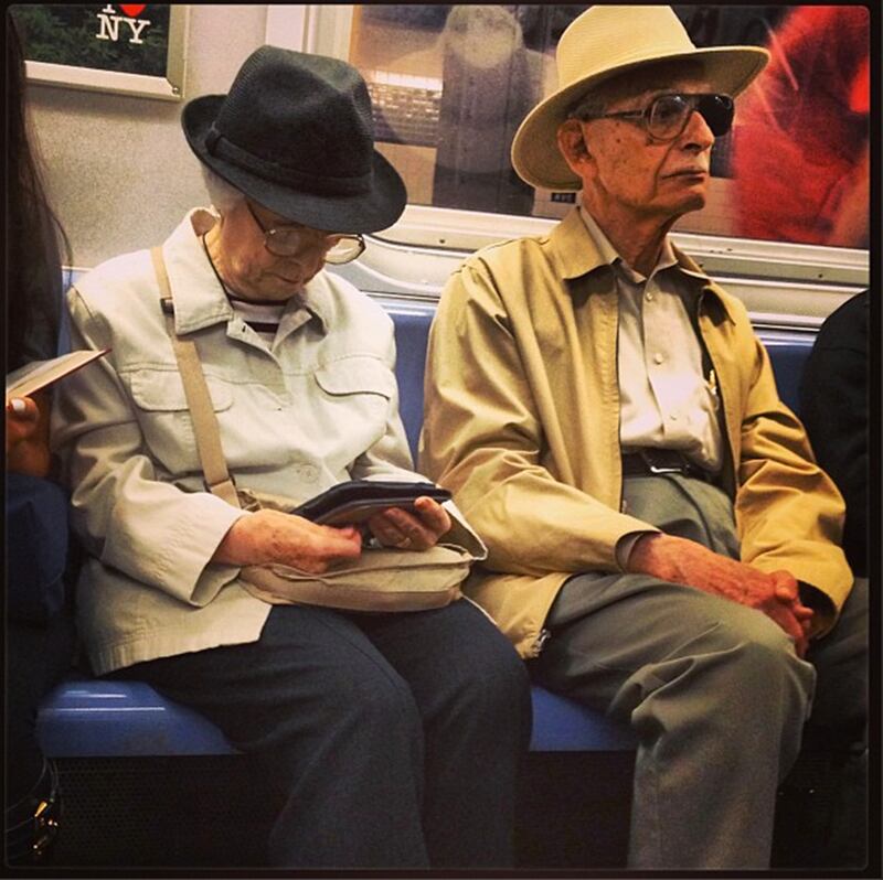 Inspiration can come from the most unusual people and places. We think that may be the case for Peter Som, who spotted this adorably coordinating elderly couple on the subway. If hats pop up on his next runway... we told you so!