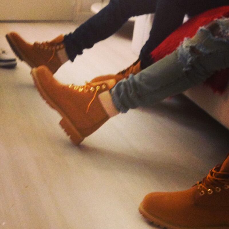It's no surprise, men love their Timberlands. Rapper Theophilus London notes this trend with his Instagram of he and Kanye West's kicks: timbos on timbos on timbos.