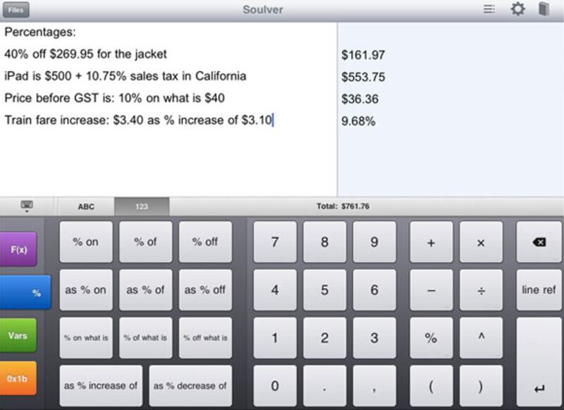 Genius Factor: Soulver functions as a mega-scratchpad by allowing you to embed calculations in text, letting users input things like "$250 as % of $2000." Easy to begin playing around with even if it requires time to fully understand how to get the most from it, Soulver is one of those apps that helps make the iPad a lightweight substitute for a laptop on a trip.