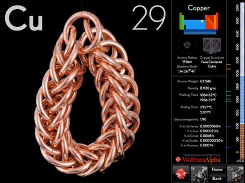 The Elements, a book by Theodore Gray that combines facts about the periodic table with striking photographs. Jeremy Horwitz, editor in chief of iLounge.com, an Apple news and reviews site, says the iPad app is a "phenomenal evolution of a digital science book with incredible 3-D photography, and an example of how amazing presentation can make arguably dry subject matter come to life."