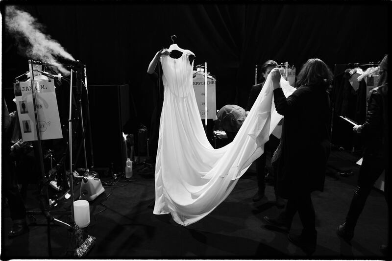 Model Marie Nasemann before the Agne Kuzmickaite, Igrida Zabere, Kaetlin Kaljuvee show on Thursday.
