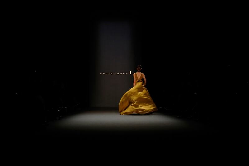 A model on the runway at the Dietrich Emter Autumn/Winter 2013/14 fashion show at Brandenburg Gate on January 17.