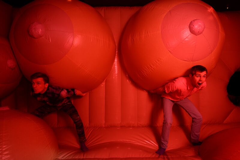Created in collaboration with London based conceptual artists Bompas & Parr, visitors enter the dimly lit, rose-colored exhibition through the “Tunnel of Love,” a disorienting hall of mirrors that leads participants on a quest for the elusive “G-spot.” Even the unluckiest of explorers is guaranteed to find the often-fabled pleasure point, which squeals in orgasm the closer you get. After the dizzying climactic journey, visitors can’t avoid jumping for joy —literally—in the exhibition’s waiting bounce house.