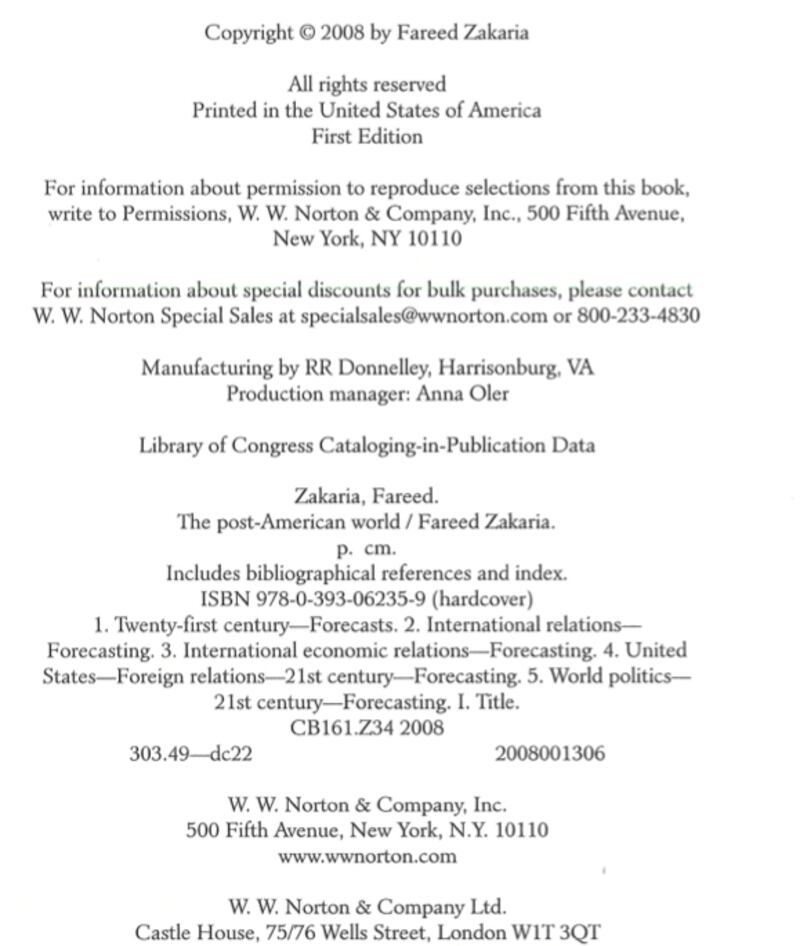 The first edition of Zakaria’s book, which became a bestseller, makes no mention of the comment’s source, nor does a paperback version of “Post-American World” published in 2009.