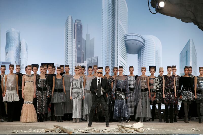 Lagerfeld takes a bow July 2 in Paris following the presentation of the haute couture Fall/Winter 2013–14 collection he designed for Chanel.