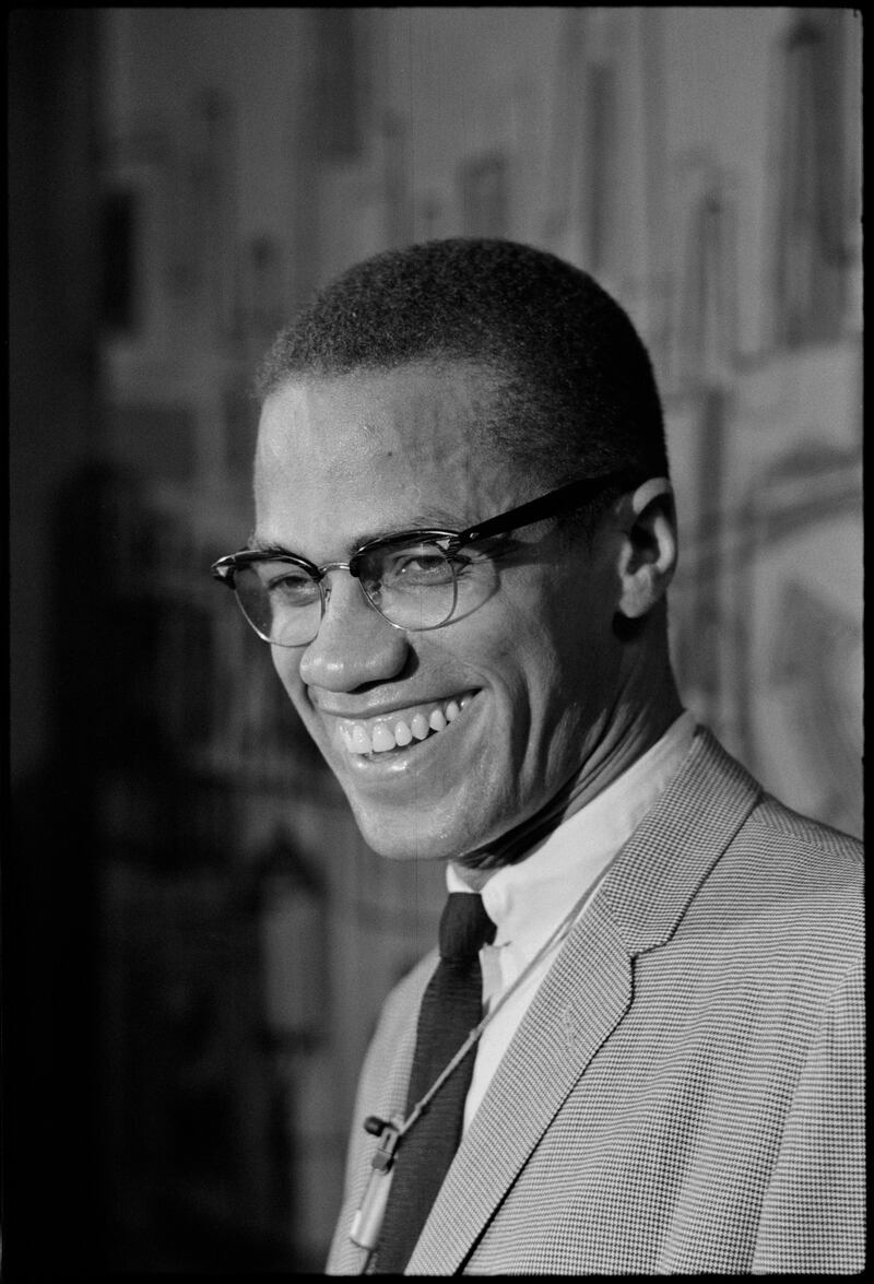 · Malcolm X, pensive in profile in one frame, laughing into the camera in the next, March 2, 1964.