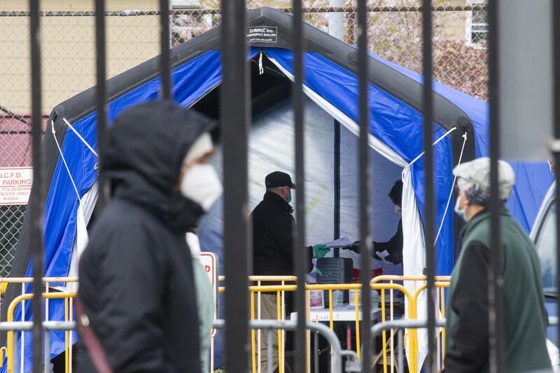 Having had a long skinny Q-tip-like test rammed all the way up his nostril, the fireman rubs his nose, pushes his face mask back up his face and walks away. But not before being told that he will get his results in somewhere between three and five days. The next person walks up to a blue line and tilts his head back for the invasive poke. The test is quick and the line moves swiftly. There’s a precise order to it all. James Shea, the director of the city’s Department of Public Safety, picks up a clipboard and jots down a resident’s name on the master list. The man would be the 101st person to get tested at this site today. It is 11:45 a.m.