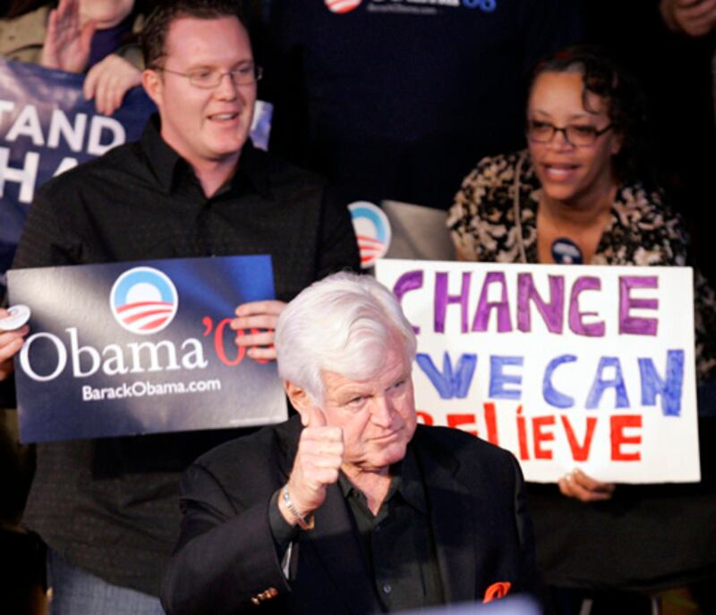 Sen. Edward Kennedy campaigns for Barack Obama at the Beebe Memorial Cathedral in Oakland, Calif., Feb. 1, 2008.