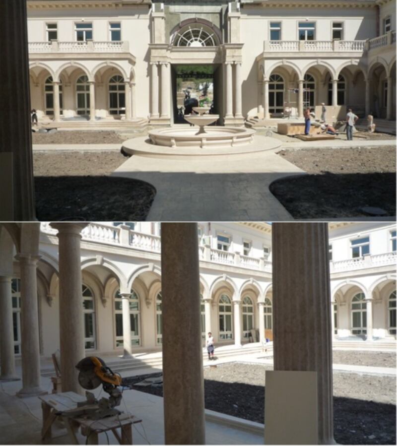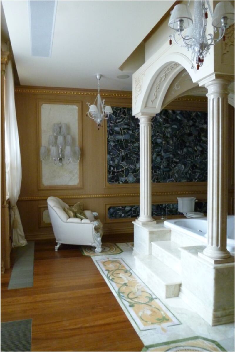 Emblems of the Russian double-headed eagle symbol, the main element of the coat of arms of the Russian Empire, are omnipresent throughout the palatial estate, including in what appears to be the private dancing room. They stick out like a sore thumb, along with a stripper pole that stands in stark contrast with the image of royal opulence the palace projects. Pink and tan pillows are strewn on the floor, to provide additional relaxation in between annexations.
