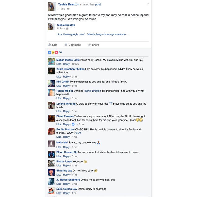She did post on Facebook the words “Rest in peace Alfred,” along with the video showing the aftermath of his fatal encounter.