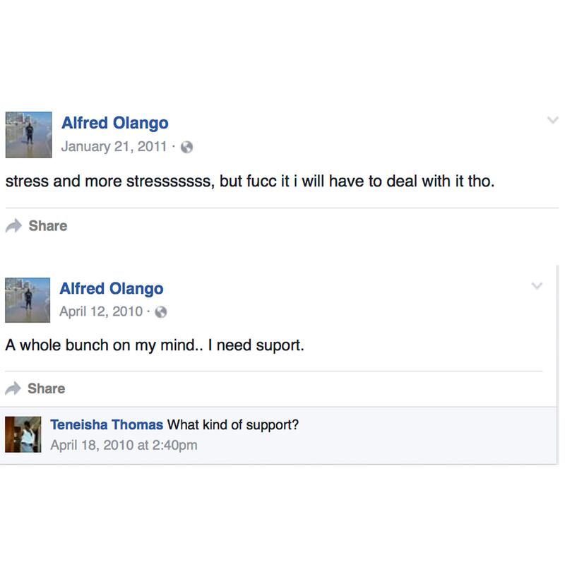 Federal court records show that a hint of that hell, as Olango fled first to a refugee camp and then to the United States from Uganda as a child along with his family in 1991 because his father had worked for the former president of the east African country and the next president had threatened to kill them. According to a Reuters report, court documents from 2006 show that he was granted permanent U.S. residency but lost that status in 2001 after being convicted of drug charges. In 2005, he pleaded guilty to a separate charge of illegal possession of a firearm and was sentenced to three years in a federal prison.