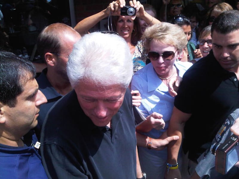 Cheering crowds swarm Bill Clinton as he makes his first public appearance in Rhinebeck this weekend.