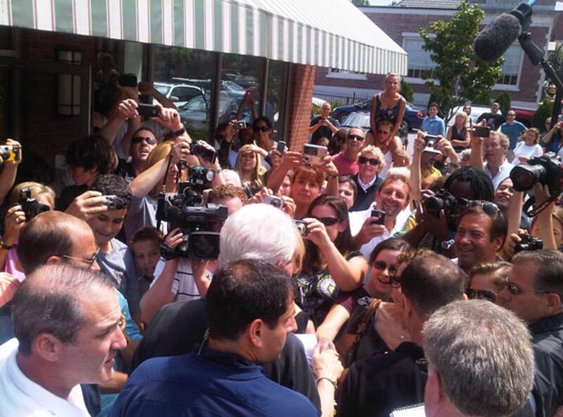 The adoring masses swarm the former president as he exits Gigi’s Trattoria.
