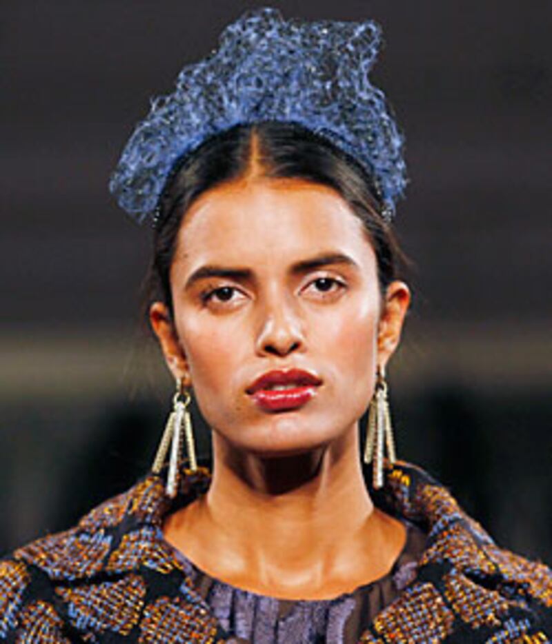 Monday at Donna Karan, necklaces fashioned from oversized gold baubles and jacks (as in the children's sidewalk game) doubled as collars atop turtlenecks. At Marc Jacobs, neckwear was significantly more colorful, yet similarly tactile—one particular bib necklace crafted from dozens of glimmering, sizeable gems helped contribute to Jacobs' '80s club era aesthetic. At Thakoon, accessories, which were the handiwork of Subversive Jewelry's Justin Giunta, were eye-catching as well; each graphic and oversized, adorned with large diamonds and mirrored slabs, generating a feel of both luxury and whimsy. At Michelle Obama favorite Jason Wu's show, jewelry designer Philip Crangi crafted intricate crowns, prime for topping off Wu's regal, elegant looks.