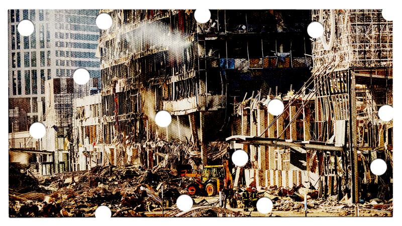 Ukrainian firefighters work amid the rubble of the Retroville shopping mall, a day after it was shelled by Russian forces in a residential district in the northwest of the Ukranian capital Kyiv on March 21, 2022. At least six people were killed in the bombing.
