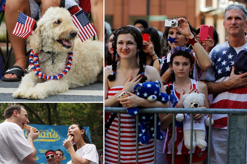 Red, white, and blue? Check. Hot dogs? Check. War reenactors? Always. On America's Independence Day, patriotic citizens—and their pets—across the country flooded into the streets for some good ol'-fashioned celebrations. Here are some scenes from the country's festivities.