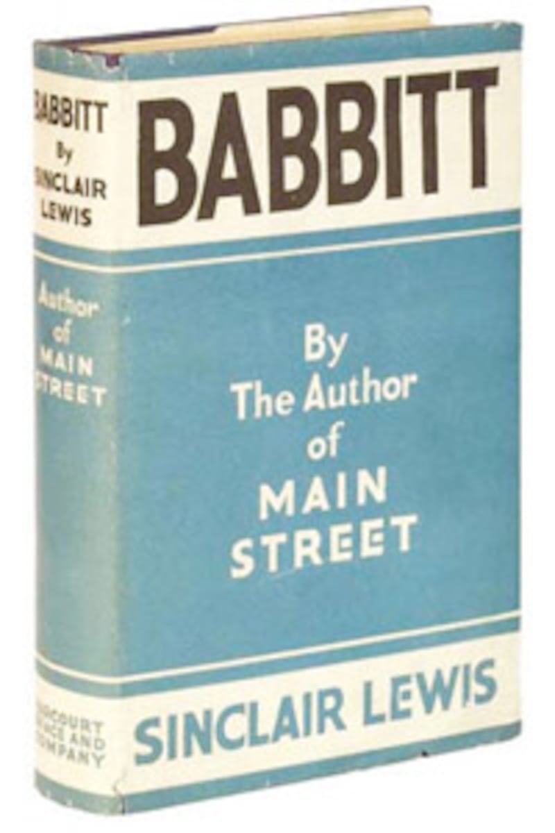 Such a man does exist of course, but only in the pages of the 1922 novel by America’s first Nobel Laureate, Sinclair Lewis. Though Babbitt turns ninety this year, Georgie Babbitt still lives and breathes and harrumphs. It’s impossible this primary season to read a newspaper or turn on the television without hearing the echo of his voice. Babbitt is the original American everyman. By day he is “busier than a bird-dog, not wasting a lot of good time in day-dreaming or going to sassiety teas or kicking about things that are none of his business, but putting the zip into some store or profession or art.” Afternoons “he mows the lawn, or sneaks in some practice putting” and after a terse dinner with wife and kids, he goes to bed, “conscience clear, having contributed his mite to the prosperity of the city and to his own bank-account.” There are lonely moments when, in the middle of the night, he is visited by a mysterious fairy child who promises to whisk him away to foreign worlds “more romantic than scarlet pagodas by a silver sea”—but upon awaking he brusquely wipes such alarming images out of his head and consoles himself with thoughts of carburetors and electric cigar lighters.