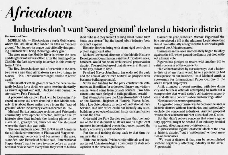 Arthur said he conferred with Sylviane Diouf for her award-winning and exhaustive 2007 book Dreams of Africa in Alabama. She called Africatown “the first [town] continuously controlled by Blacks, the only one run by Africans.”