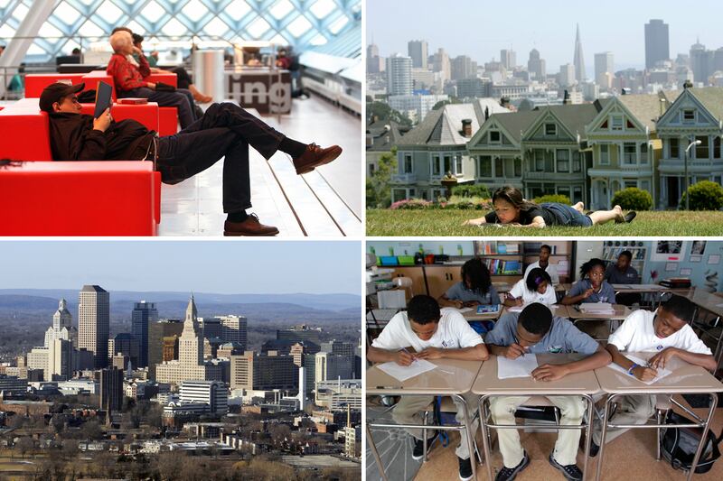 To compile the 2012 list of the smartest cities, The Daily Beast first turned to Lumos Labs, the company behind the online “brain gym” Lumosity. With data collected from more than 1 million users as part of its human cognition project, Lumos Labs was able to analyze performance for nearly 200 metro areas in five cognitive areas: memory, processing speed, flexibility, attention, and problem solving. The median Lumos Lab score, presented as an estimated IQ score, was worth 50 percent of our final, weighted ranking. The other half of our ranking was based on the percentage of adults over age 25 with a bachelor’s and/or master’s degree. While most cities on the list are hubs of higher education, a few of the top-performing metropolises have relatively low levels of higher education. In Lafeyette, Ind., for example, the number of residents older than 25 with college degrees is average, but they had the second-best performance on the cognitive tests, beating out hyper-educated cities like Madison, Wisc., and San Francisco.