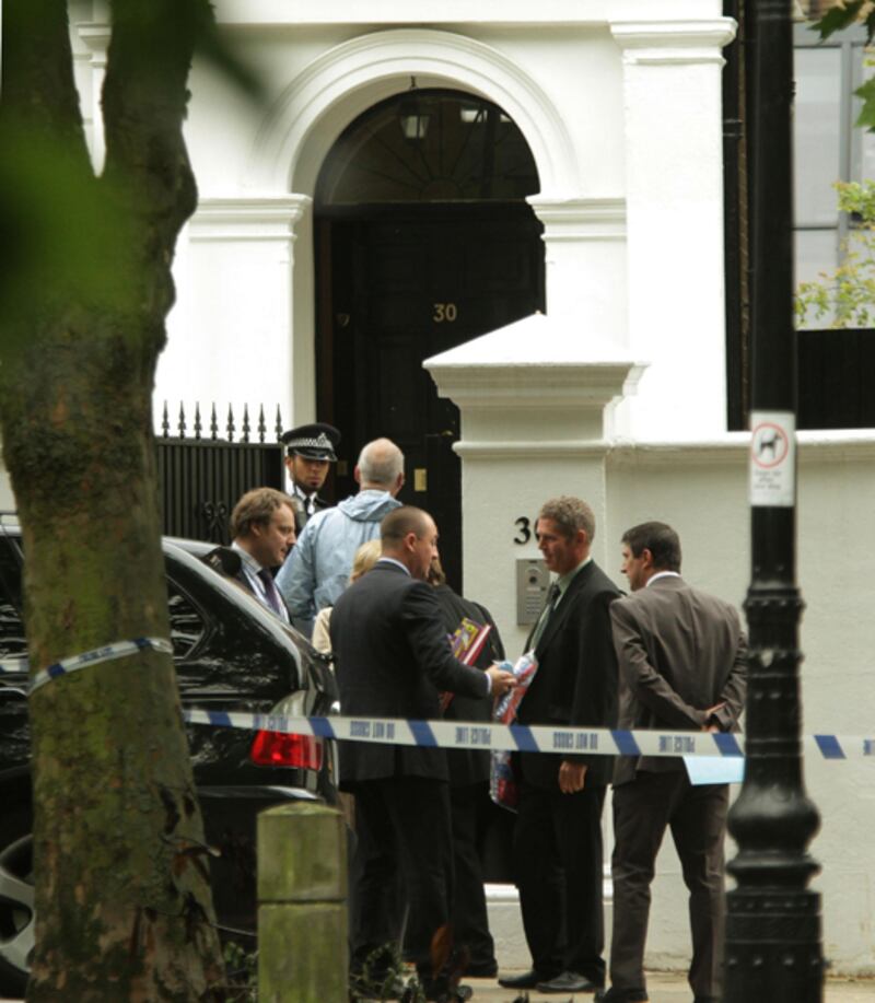 Police outside the property in north London where Winehouse was found dead.