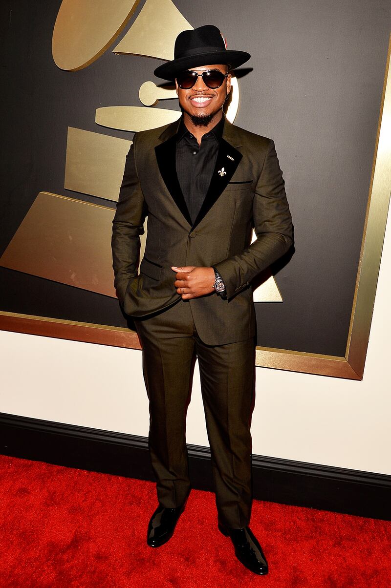 OK, we end with our men's gold star of the evening. Ne-Yo in the best men's look of the evening, a two-tone Marc Jacobs suit, which finally liberated red carpet hombres from the blue-black thing. I utterly covet this suit.