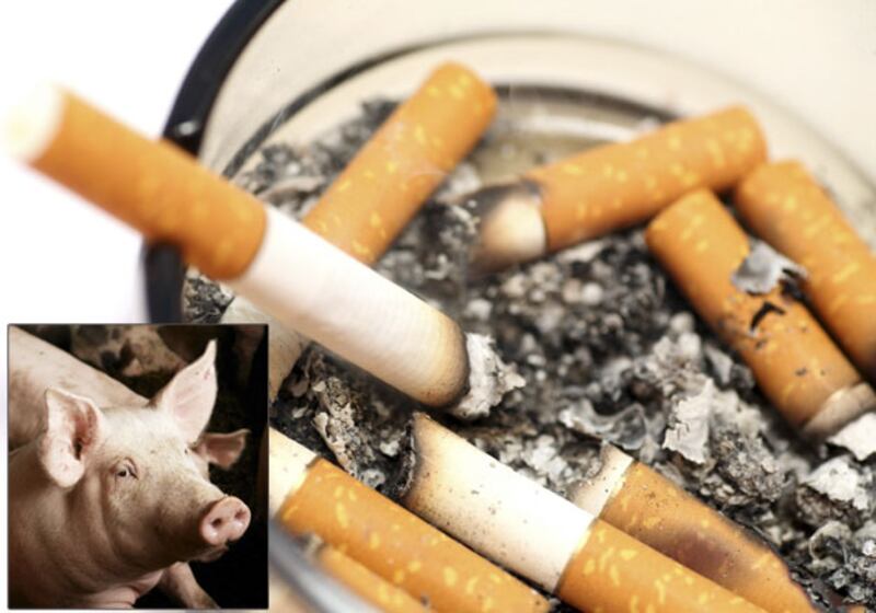 The multitude of sins that can be hidden under the phrase “processing aids”—a catchall term for ingredients used to control tar and nicotine content in cigarettes—apparently includes pigs’ blood. New Dutch research from March of this year has found traces of porcine hemoglobin in the filters of some brands of cigarettes. In blood, hemoglobin bonds to oxygen to transport it throughout the body; in filters, it bonds to passing toxins and removes them from the smoke before it enters the lungs.