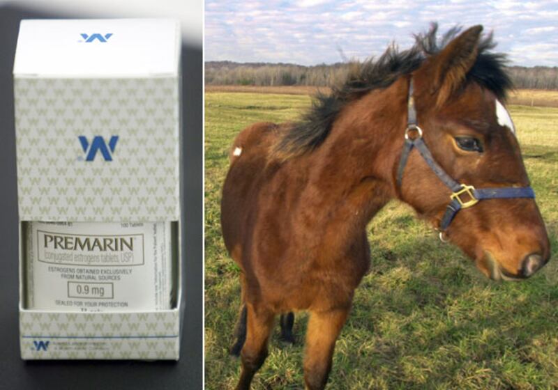 Premarin, the popular estrogen-replacement drug for menopausal women, takes its name from its main ingredient: PREgnant MARes’ urINe. Since 1942, female horses have been impregnated and fitted with the equine equivalent of colostomy bags. These gather their urine, which is then processed to produce estrone, equilin, and equilenin. Historically, the foals were eventually sent to slaughterhouses, though today, many pregnant mares’ urine (PMU) operations also act as traditional horse breeders.
