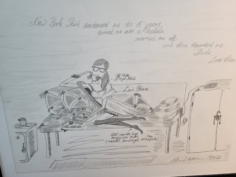 In a call from Sorokin to Martinez held about 9 p.m., Sorokin, speaking from Orange County Correctional Facility in Goshen, NY, told partygoers on speakerphone that she was “so grateful” for their support and that her number-one wish for 2022 was “getting out of prison!”