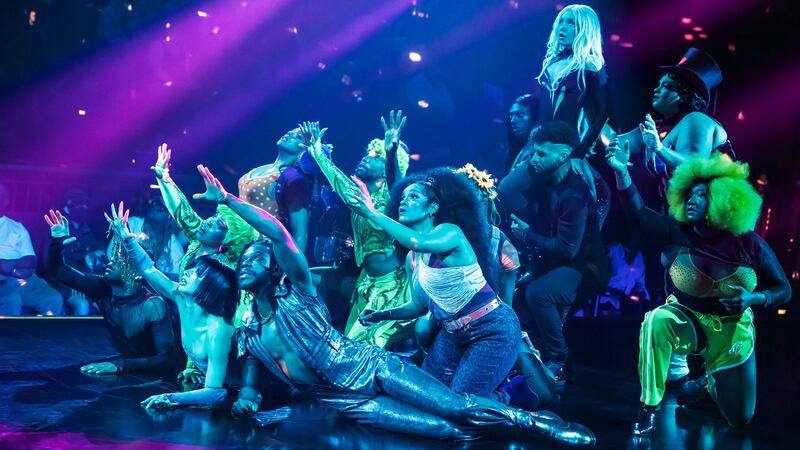 Qween Jean’s costumes—riotous glitter, insane colors, and drama-streaked silhouettes—are the finest costumes on or off Broadway right now. Choreographers Arturo Lyons and Omari Wiles and dance captain Baby serve up a feast of movement that takes in ballroom, nods to the Cats original, pop, and modern ballet.