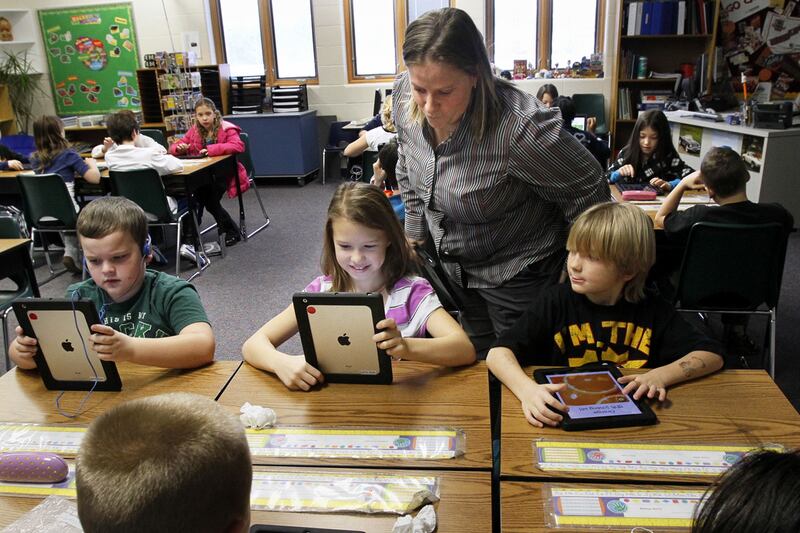 Putting everything on an iPad would produce significant advantages. The most obvious improvement is that kids wouldn’t have to lug around 40 pounds of textbooks. Another is that textbooks are ridiculously expensive. Worse, they’re often out-of-date, sometimes badly so. An e-book can be updated simply by zipping a bit of data over the air.