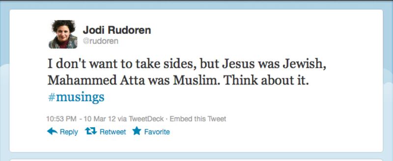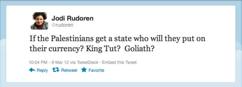 After the international firestorm generated by a series of wayward tweets, incoming New York Times Jerusalem Bureau Chief Jodi Rudoren has learned to adjust her twitter output to avoid offending watchdog groups. Below are a selection of approved Rudoren tweets.