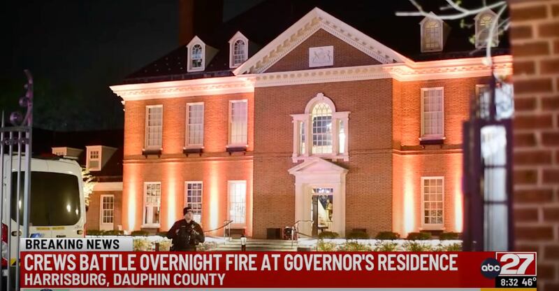 Shapiro said in an X post that he and his family were woken up and evacuated around 2 a.m. by Pennsylvania State Police as the fire spread through the Governor’s Mansion in Harrisburg. No one was hurt, and the fire was extinguished, he said.