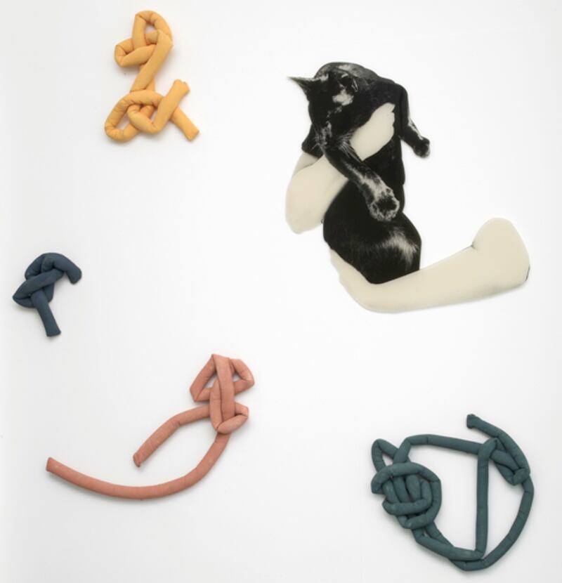 My only "discovery" in Miami – this time at the NADA fair that rides Basel's coattails – was the 33-year-old Glasgow artist Laura Aldridge, showing in the booth of the London nonprofit called Studio Voltaire. The silkscreened image at the center of her wall installation, titled "Hand Extended and Knot Set", shows arms holding a cat, and it loosely sets the tone and theme for the six sculptural "knots" with which it's surrounded. The whole piece is a subtle take on embrace and entanglement. I wouldn't understand it, if it weren't that my wife is permanently entangled with our cat. As the mega-collector I am pretending to be, I could buy it as a treat for the two of them – at $6,000, it would barely count as a stocking stuffer.