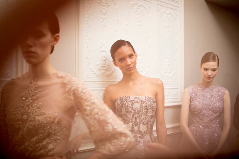 The couture shows in Paris, which ended Thursday, are always filled with their fair share of romance. Valentino, Chanel, and Dior all offered elegant and feminine collections. But at Elie Saab, otherworldly embroidered dresses came down the runway—shimmering, shining, and iridescent. Photographer Kevin Tachman captured the energy backstage before the show.