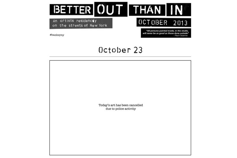 On Wednesday morning, a week after the Mayor Bloomberg called him out, the mysterious street artist Banksy posted on his website to let everyone know that “Today’s art has been canceled due to police activity.”