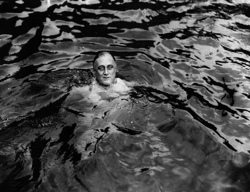 Franklin D. Roosevelt took a break from campaigning for president to take a dip in the pool at his estate in Hyde Park, N.Y., in August 1932.