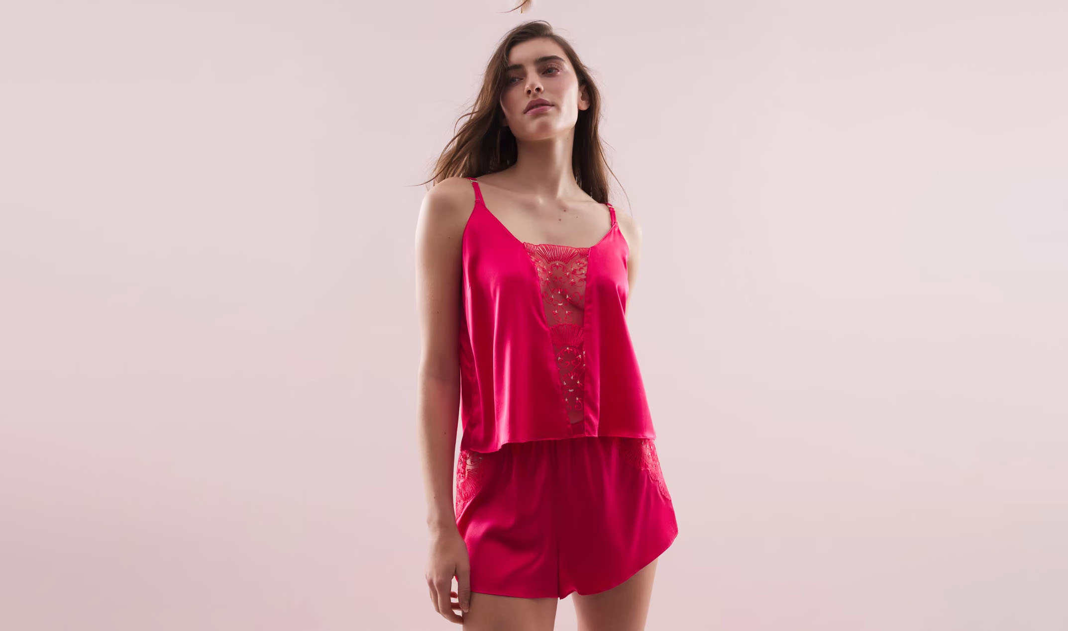 When it comes to touch, there’s nothing that feels more sensual than silk. Soma’s Sexiest Valentine’s Day capsule is full of touch-worthy silk pieces, including this two-piece pajama set (sold separately). There’s nothing better than a luxe PJ set—especially one that’s a bit more sultry than your average pair.