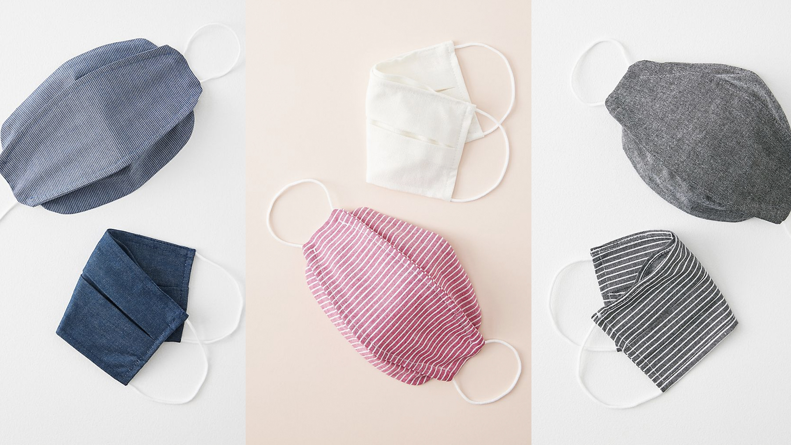 Amadi Chambray Ear Loop Reusable Face Masks, Set of 2: This set of masks offers two shapes (oval and rectangle) and is made from sturdy, soft chambray. The elastic loops fit securely over your ears and it’s completely machine-washable.