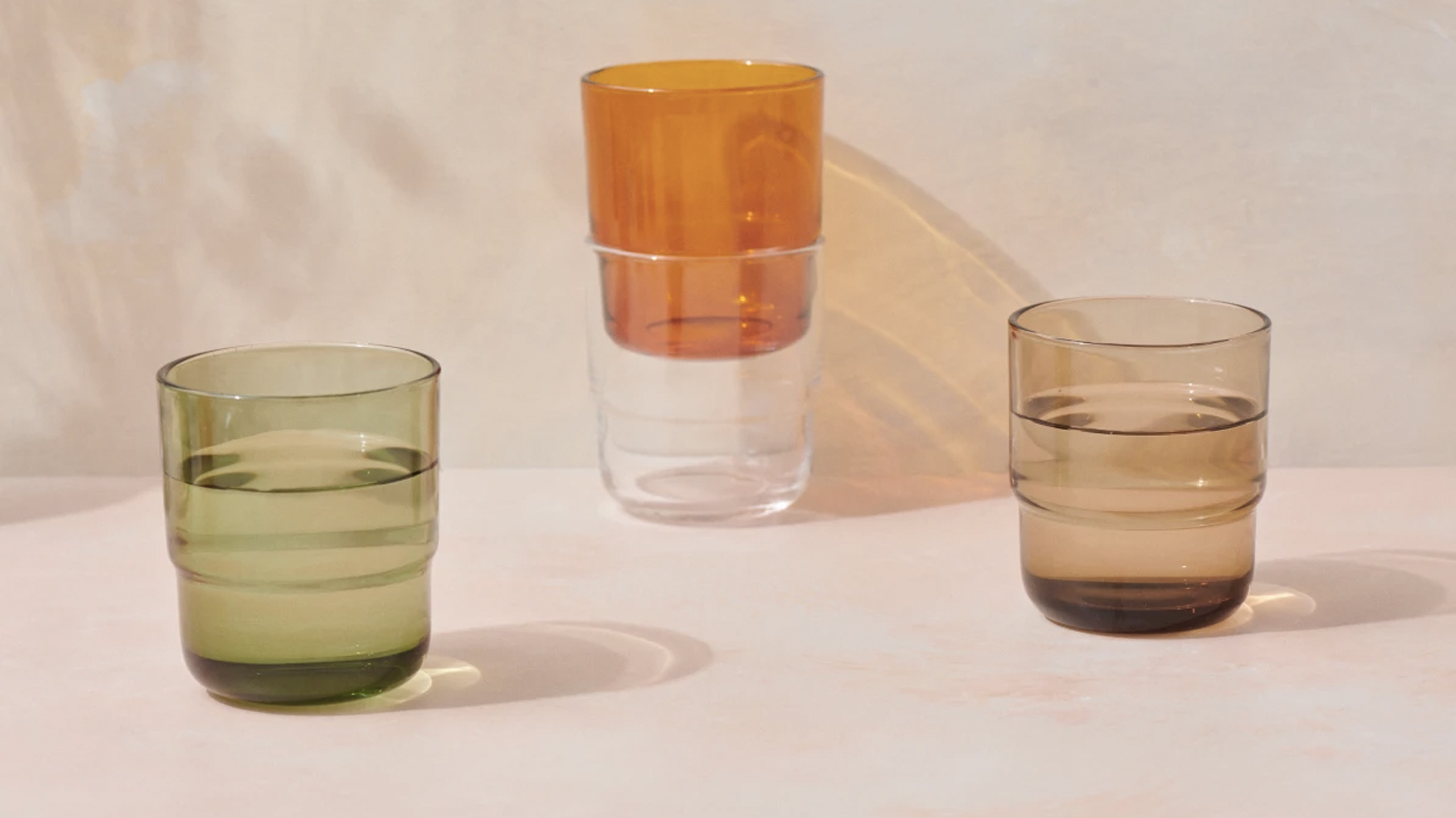 Our Place Drinking Glasses: This collection of recycled glass cups are the perfect thing to set your dinner table with. Choose from four colors: Dusk, Sunset, Dawn, and Clear. Or, choose the multi-pack and get one in every color.