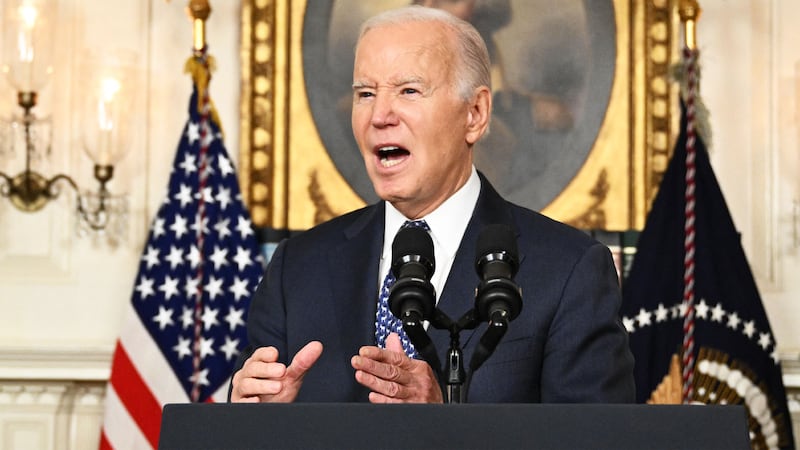 President Joe Biden answers questions about Israel after speaking about the Special Counsel report in the Diplomatic Reception Room of the White House in Washington, DC, on Feb. 8, 2024.