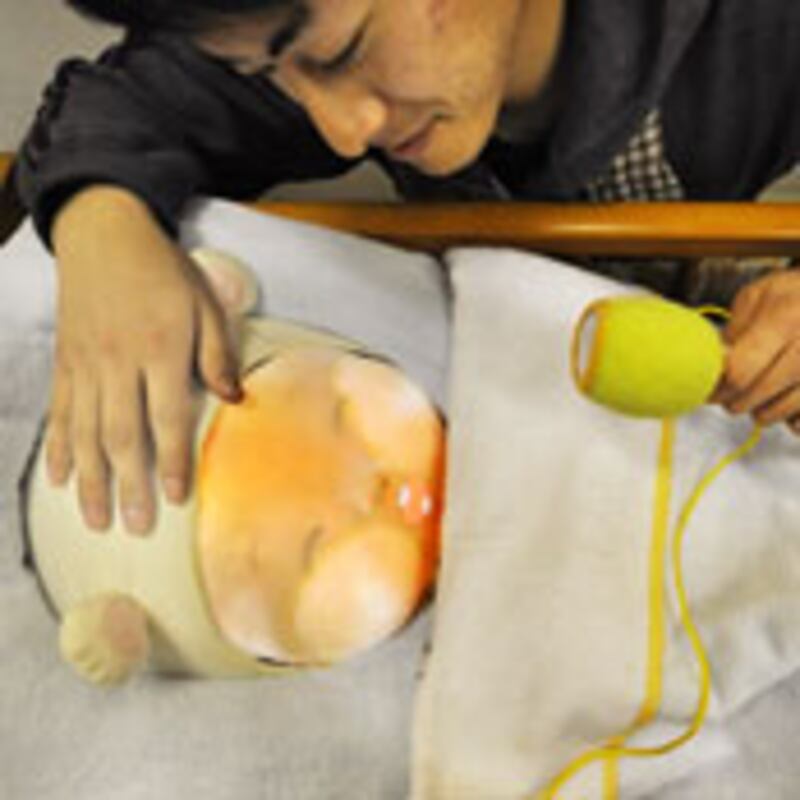 The idea behind Yotaro is exactly the opposite of the idea behind the RealCare Baby, an American counterpart. In Japan, where the birth rate is falling at an alarming pace, Yotaro is intended to show citizens (one wonders in what context) just how beguiling, responsive, and rewarding babies can be. Which may be why the only bodily fluid emanating from Yotaro is the warm water that comes from its eyes and nose now and then. (No crusting, no chafing, nothing green, no need to use one of those squeegee things that suck your child’s face in, don’t get me started.)
