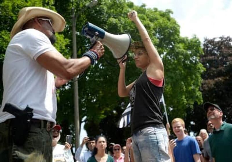 Black Lives Matter protesters at a Blue Lives Rally in Kenosha