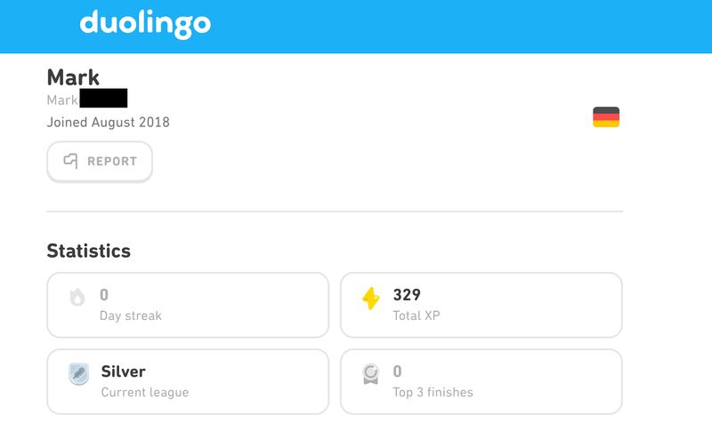 Whether a result of dissatisfaction with Duolingo or a waning interest in the language of Goethe (and Joseph Goebbels), Robinson’s apparent learning experience on the language app was not especially fruitful. The account—registered to his email as an English speaker learning German—was created in August 2018 and has since earned only 329 experience points, or XP.