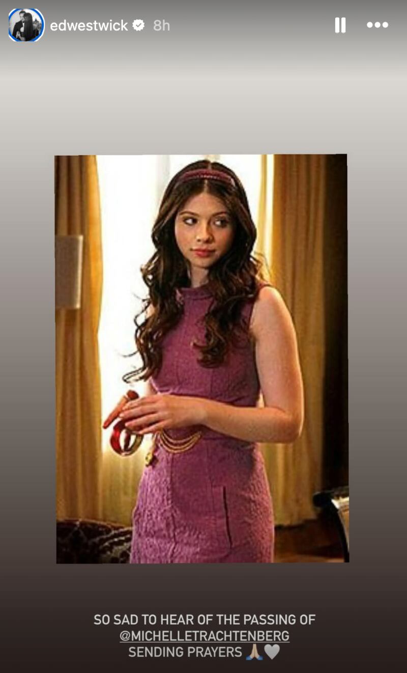 “It’s been a long time since I’ve seen Michelle but I remember a talented, sharp, funny and warm soul,” Ed Westwick, who played Chuck Bass on the teen drama, told People magazine in a statement. “Thinking of her and the family. So sad.”