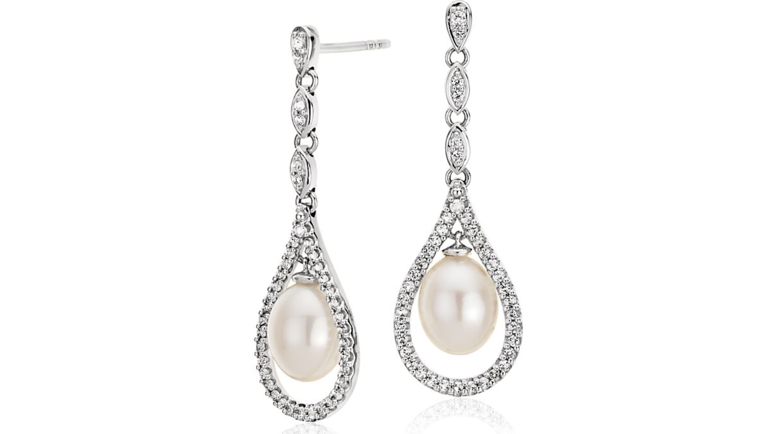 These stunning earrings feature pearls framed in glittering halos of white topaz. They’re perfect for any special occasion.