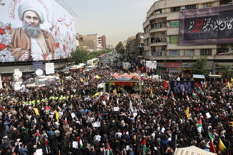 Iranians attended a funeral for Ismail Haniyeh en masse on Thursday.