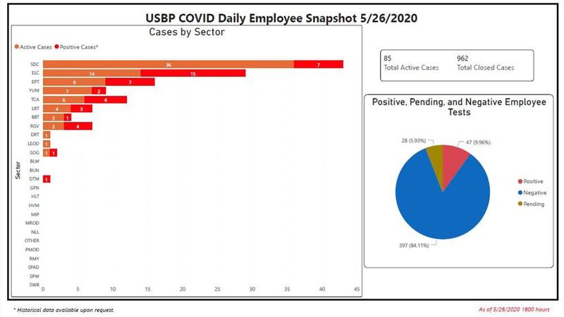 The number of COVID-19 cases among Border Patrol employees between April 26 and May 26.